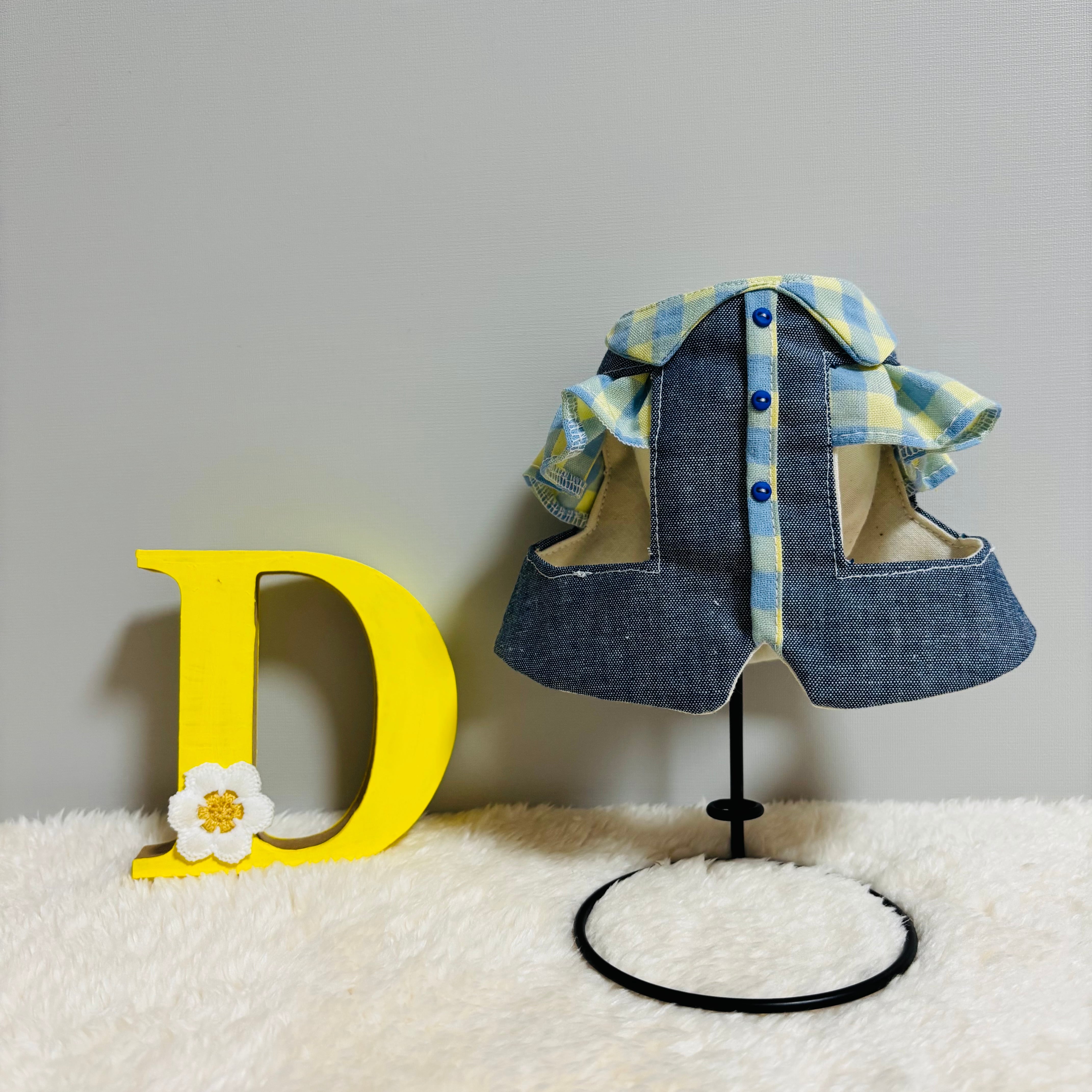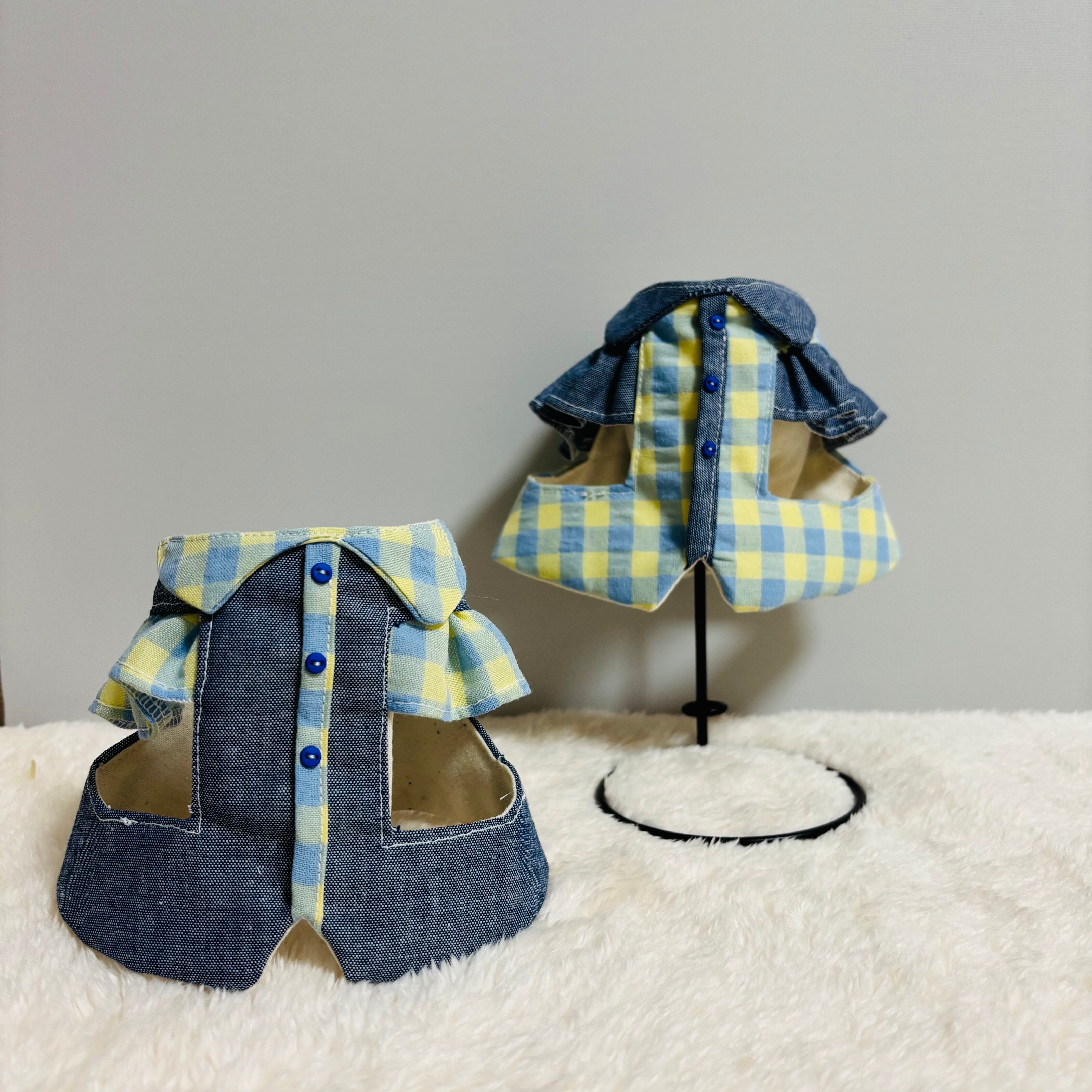 デニム風の生地で作ったうさぎさん用ハーネスになります❁⃘*.゚