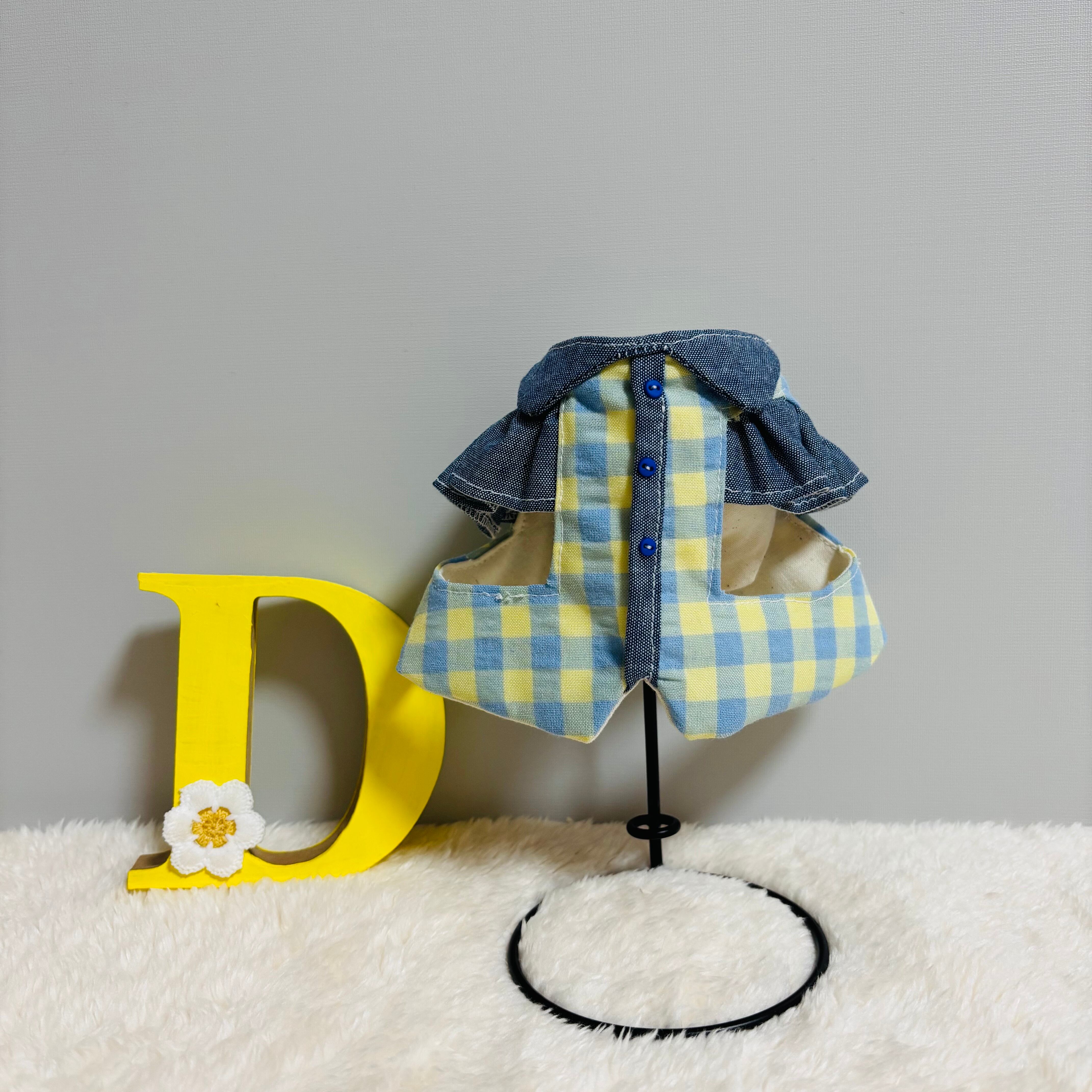 可愛いチェック生地で作ったうさぎさん用ハーネスになります❁⃘*.゚