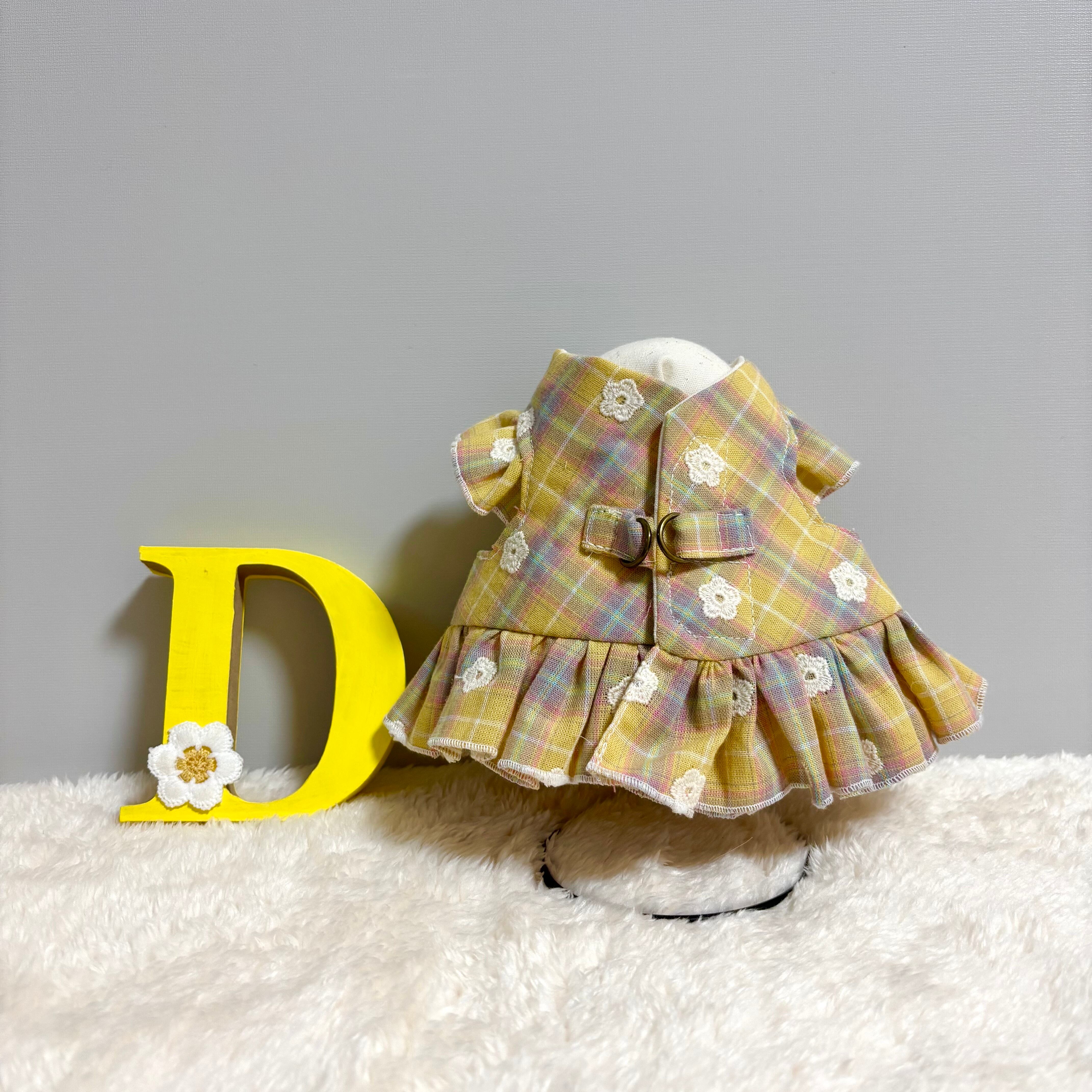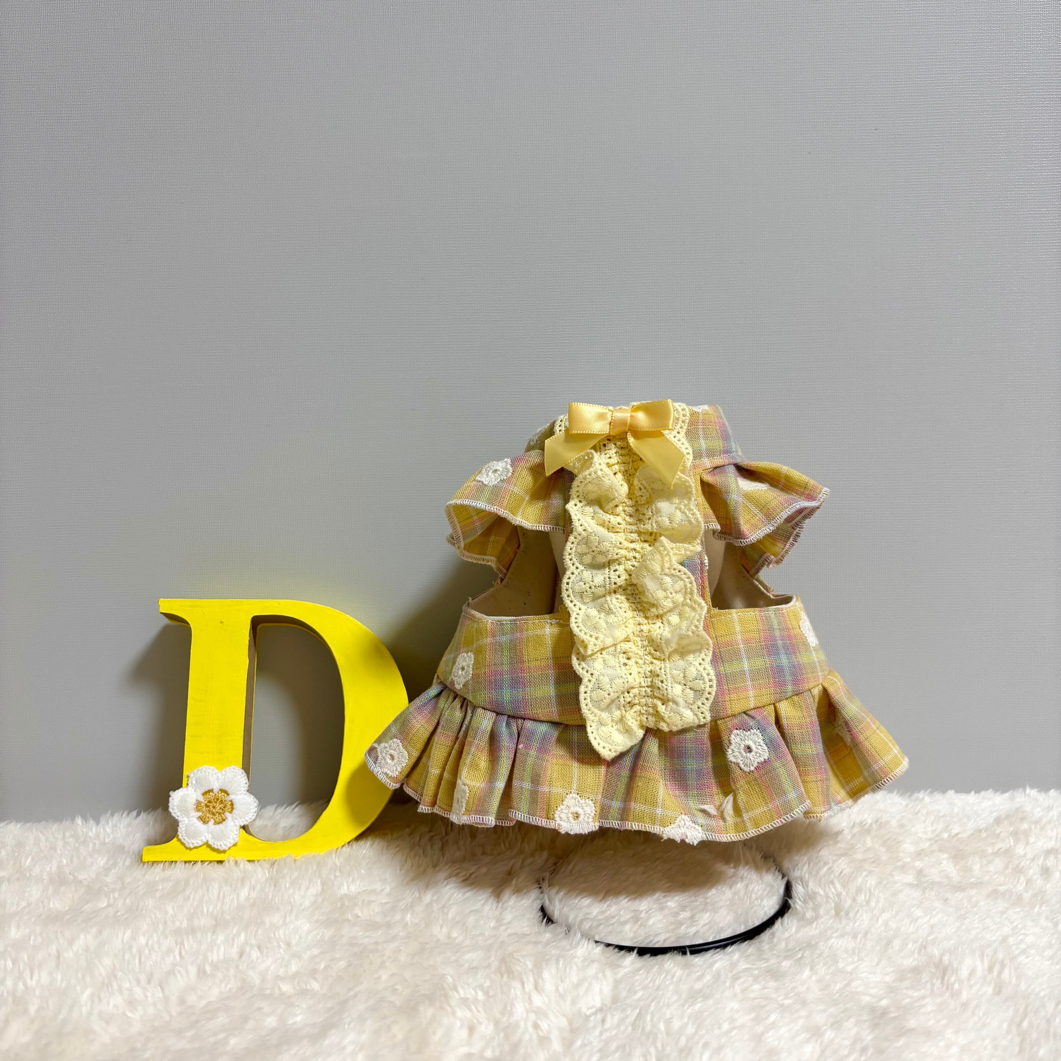 お花の刺繍が入ったチェック生地で作ったうさぎさん用ハーネスになります❁⃘*.゚