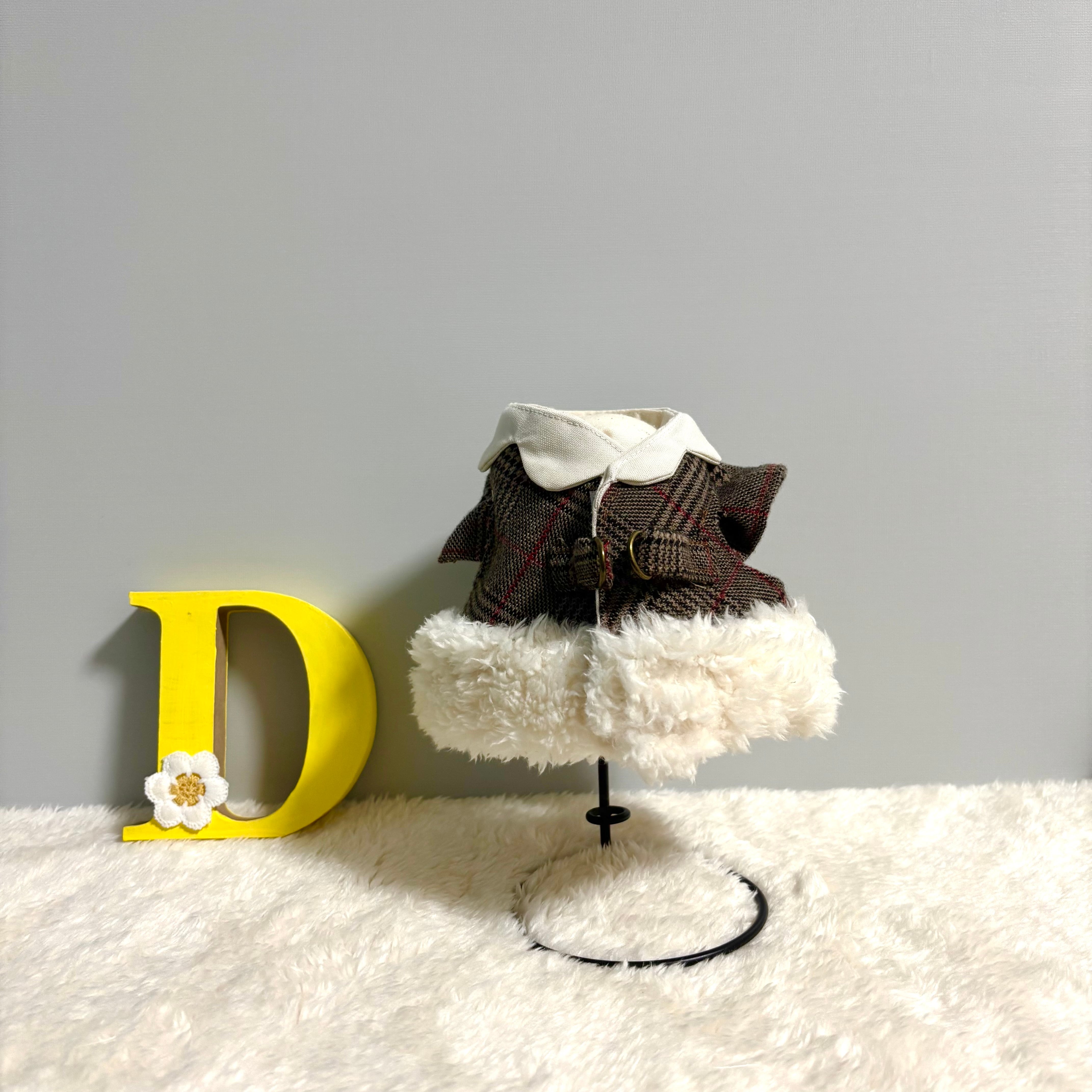 チェックともこもこ生地で作ったうさぎさん用ハーネスになります❁⃘*.゚