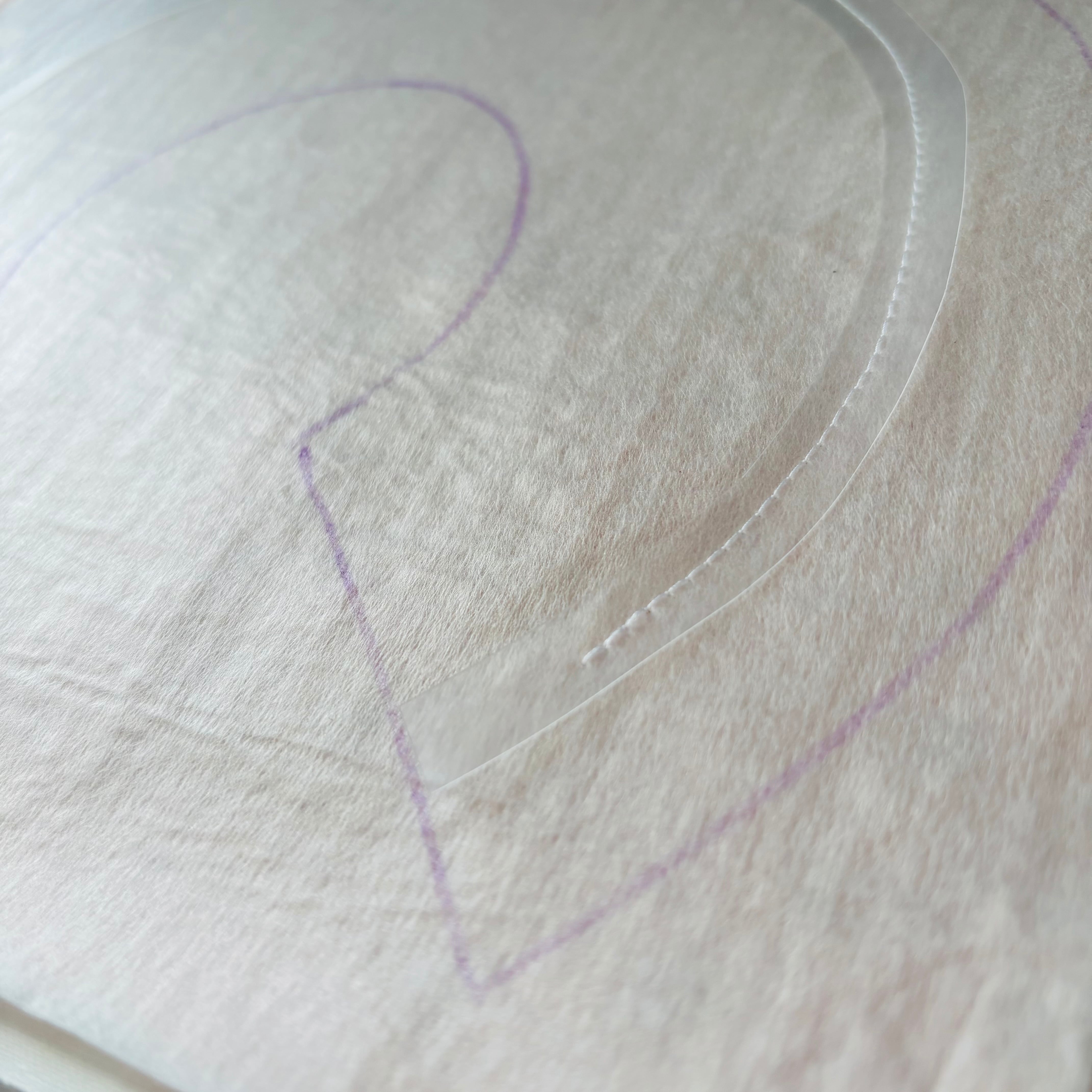 中に薄く軽い型を縫い合わせてますので型崩れ防止になり、もしカキカキしても形を崩さず使用できるようにしております。
