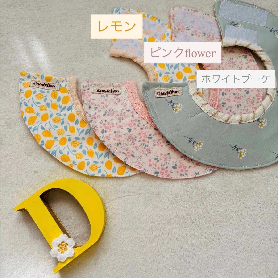 首回りはダブルガーゼで柔らかくし少しでも負担が少ないようにと作成しました!
